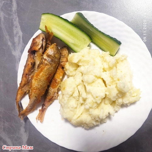 Было: суп с клёцками, фасоль в томатном соусе, пюре с котлетами, макароны с сыром, пирожки с творогом, рулет со сливовым вареньем (слива с шоколадом, в чистом виде никому не зашло, в выпечке некоторые штатские и гвозди съедят), яичница на сале с грибами и без них, жареные карасики.