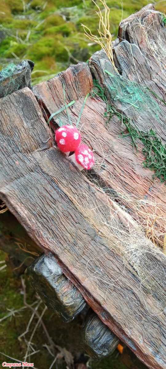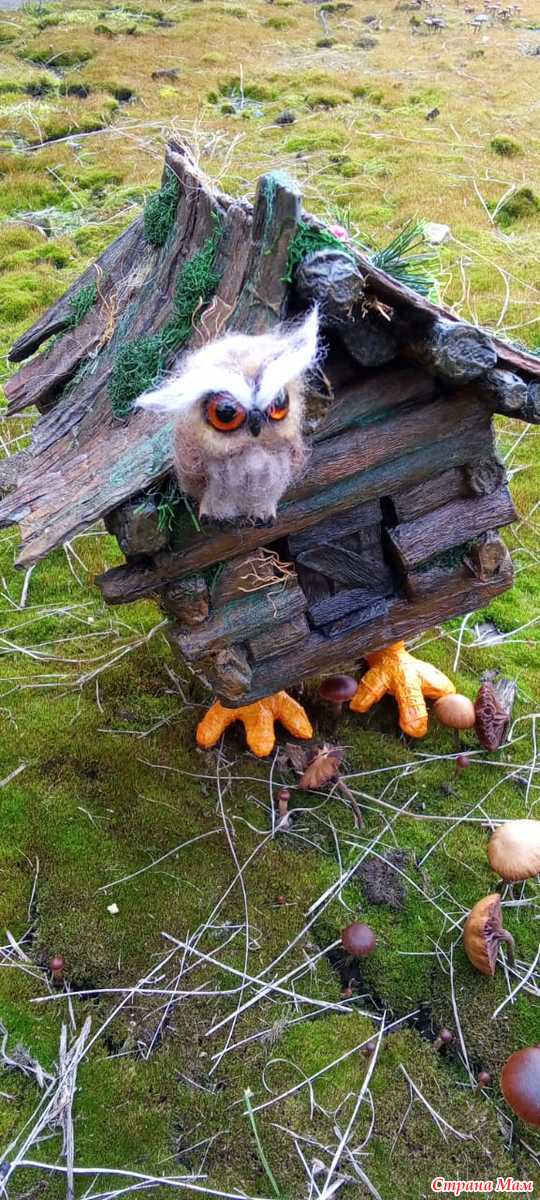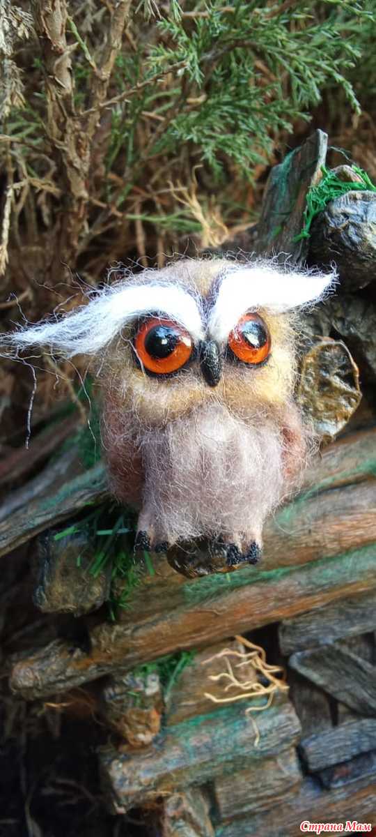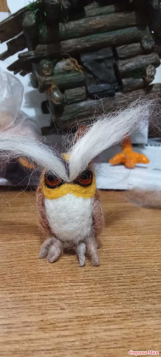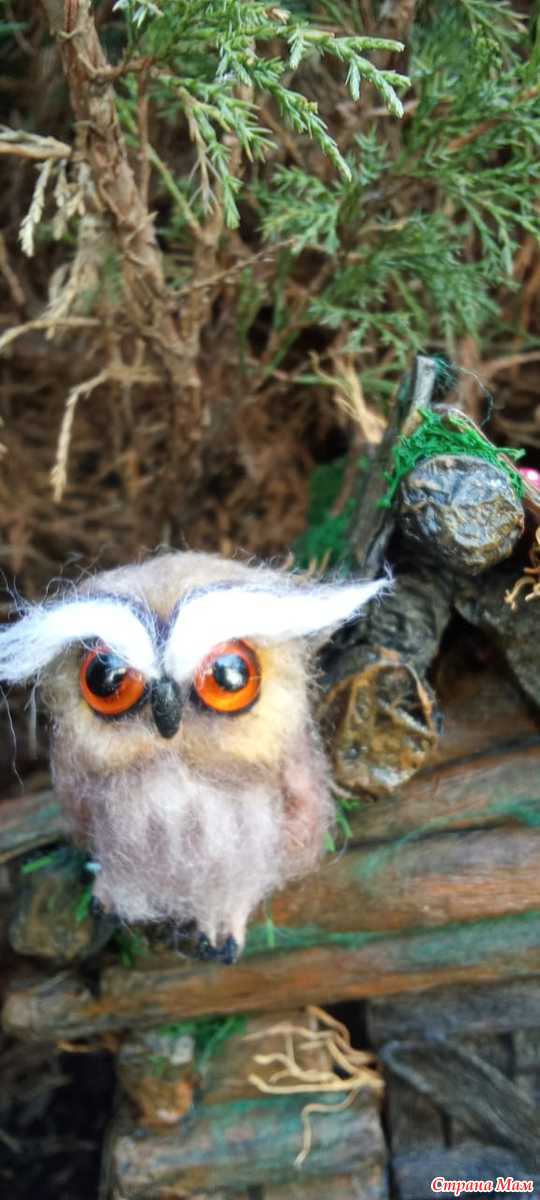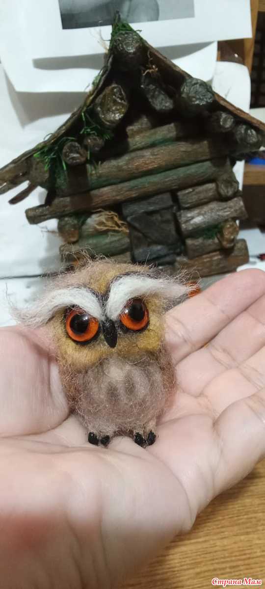 Решено, что надо маленько населить. Поэтому будет Филин. Сделала его методом "сухого валяния" из шерсти (фелтинг).