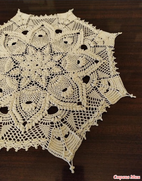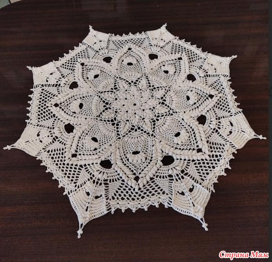 Еще одна салфеточка по дизайну Азы Отрошко. Просто захотелось ее связать. Схем не будет, так как описание платное. Нитки Ярнарт виолет, 282м/50гр, крючок 1,5. Диаметр 54 см. Ниток ушло чуть больше 100гр.