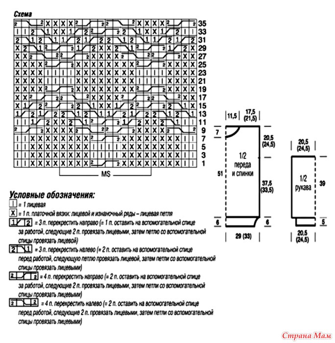 На ней даны только лицевые ряды, в изнаночных рядах петли провязывать по рисунку или согласно инструкции.