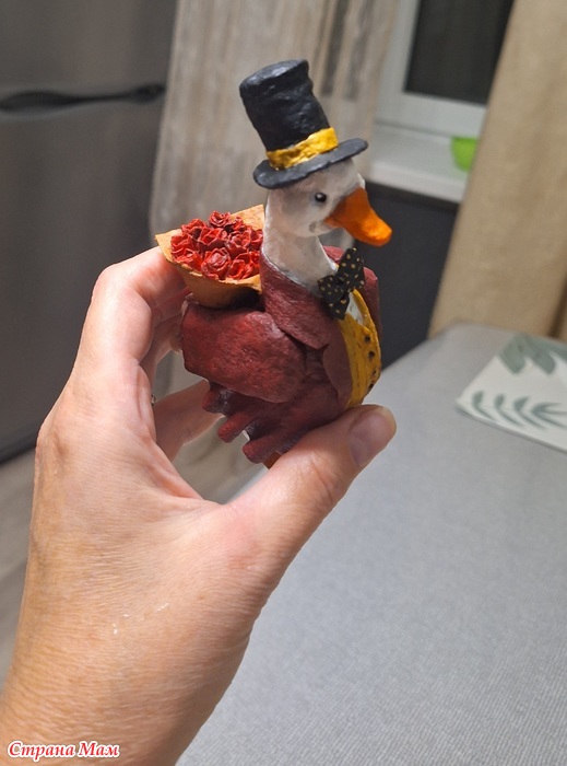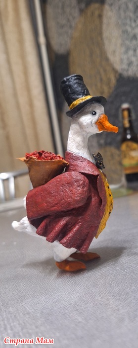 Сказать что все шло не так, просто промолчать. Вата горбилась, катушка с ниткой улетала из рук, а гусик получался кособок и горбат. Ну когда русская женщина пассовала перед трудностями? Сделав на сегодняшний день пятую игрушку, понимаю сколько ошибок допустила и что мой гусик далек от совершенства, я все равно его люблю. Ну а теперь просто фотографии в разных ракурсах.