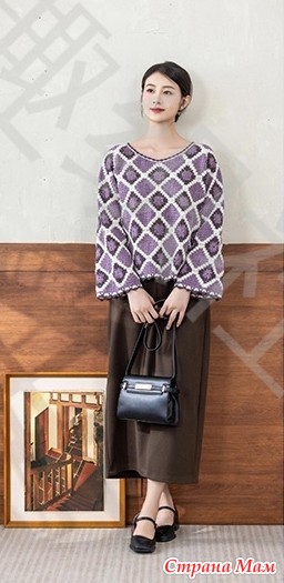 Джемпер и сумка из разноцветных квадратов расположенных по диагонали.