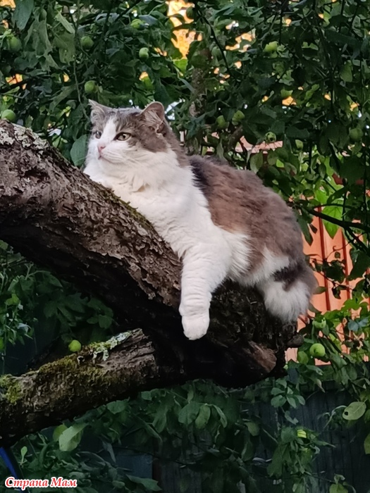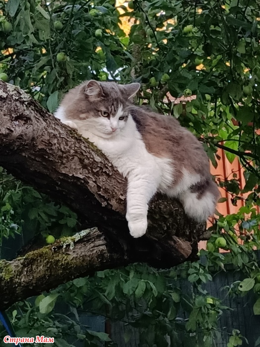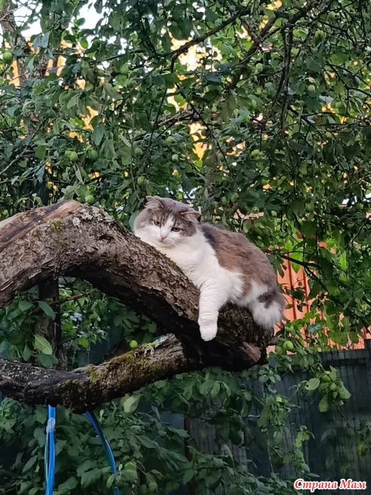 Однажды на даче кот залез на старую яблоню. Я в течение небольшого времени наблюдала за ним. И он за мной. И вот что из этого вышло....