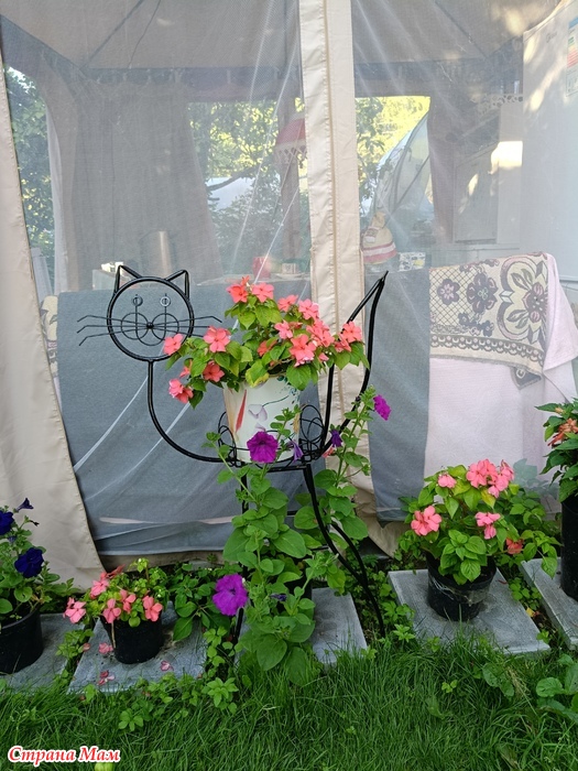А чтобы все знали, что это "Кошкин Дом", привезли специальный указатель в виде цветочной подставки...