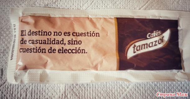 У меня имеется целая коробка с порционным сахаром. И на каждом таком пакетике написано какое - нибудь высказывание.