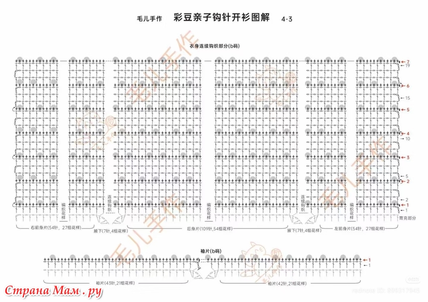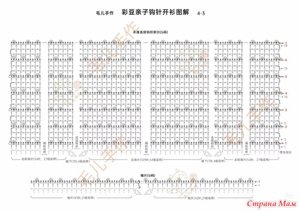 —После того, как кокеточка будет закончена, на левой полочке останется 54 петли (27 повторов узора)—