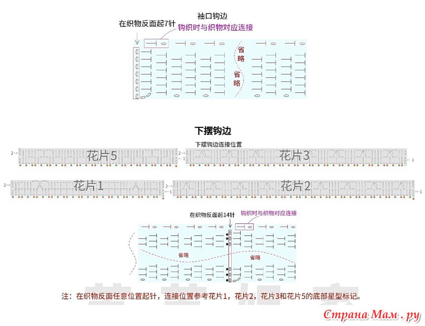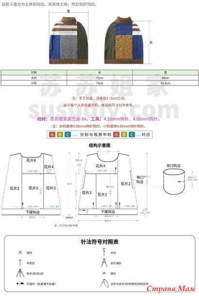 Примечание: Для больших размеров используется крючок 4,50 мм, а для маленьких размеров — крючок 4,00 мм.