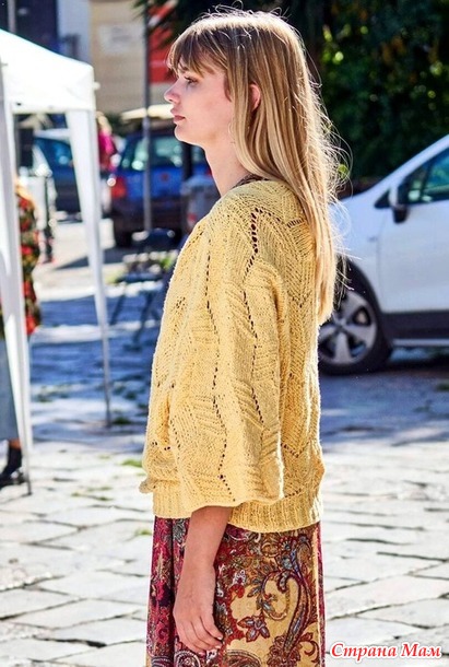 Для вязания нам потребуется 450 (500) 550 г песочно-желтой (цвет № Fb 14) пряжи LANA GROSSA "Bacca": 100% хлопок; 120 м/50 г.