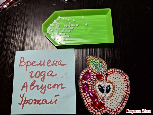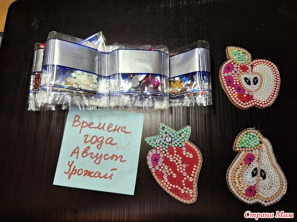 В августе нашей темой был "Урожай". Причем именно фруктово-ягодный урожай. Насмотревшись на картины алмазной мозаикой, которые делали участницы нашей группы, я тоже решила попробовать.
