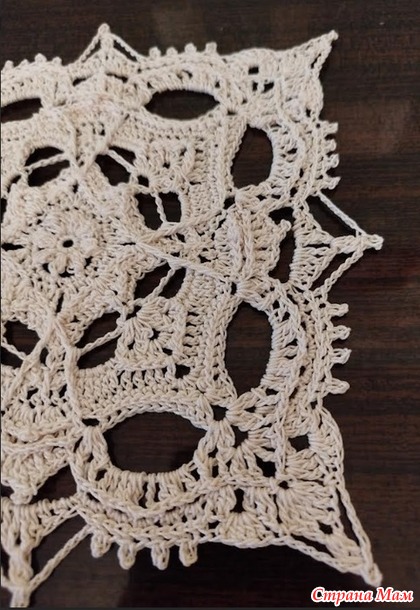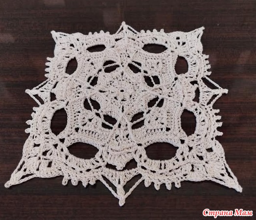 Эту салфетку я вязала по схеме, которая часто мелькает в инете и на которую я давно заглядываюсь. Но вот исполнения я так и не нашла. И вот наконец-то я решила связать. Схема хорошая, хотя и приходилось мне разглядывать ее с лупой. Не всегда все понятно было, до 14 ряда я все таки добралась, а дальше пошли непонятки, поэтому последние ряды это моя фантазия + частично взятые элементы схемы. Нитки Ярнарт виолет, 282м/50гр, крючок 1,5. Размер получился 18х18 см.