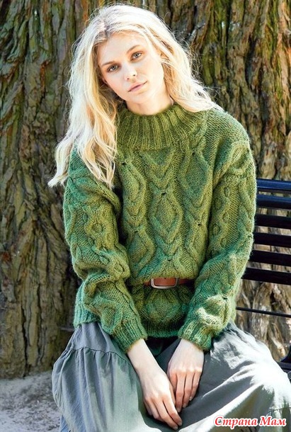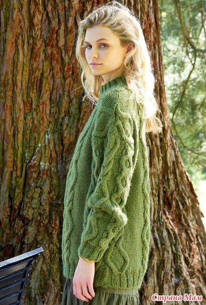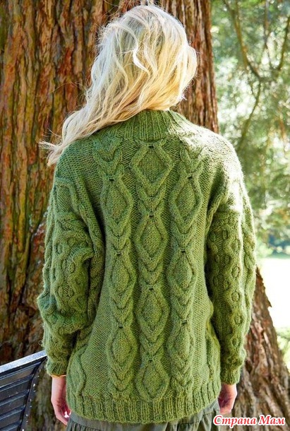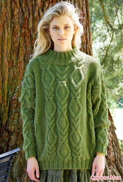 Свитер с объёмным узором из ромбов и сот. Спицы.