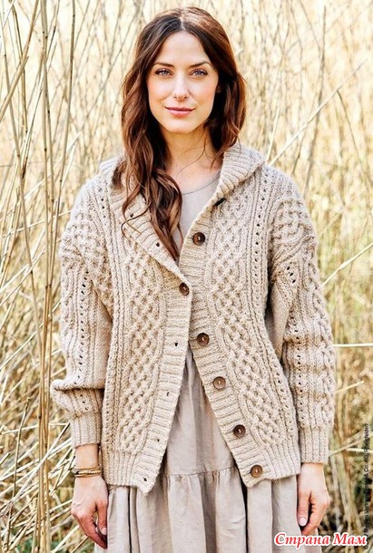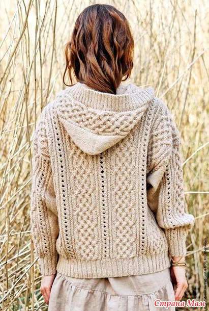 Кардиган с капюшоном и арановыми узорами. Спицы.