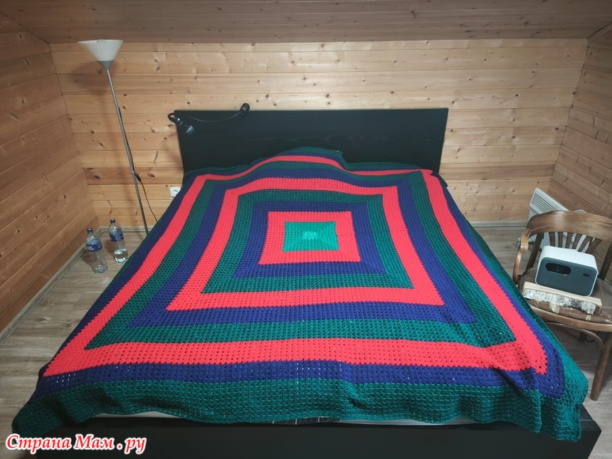 Я плед правнуку вяжу уже 3’ месяца, размер 120/60 см... А тут такая громадина и всего _2 месяца!!! Великолепно!
