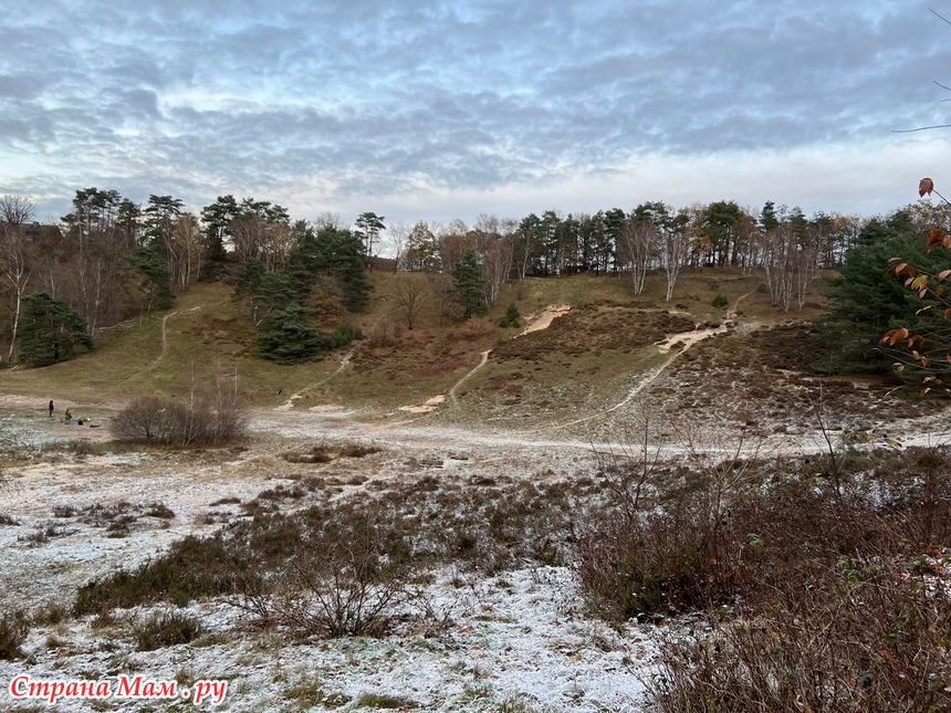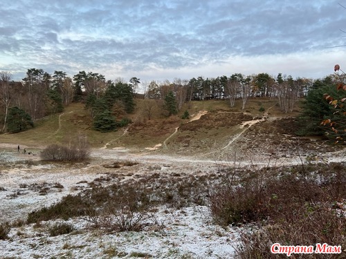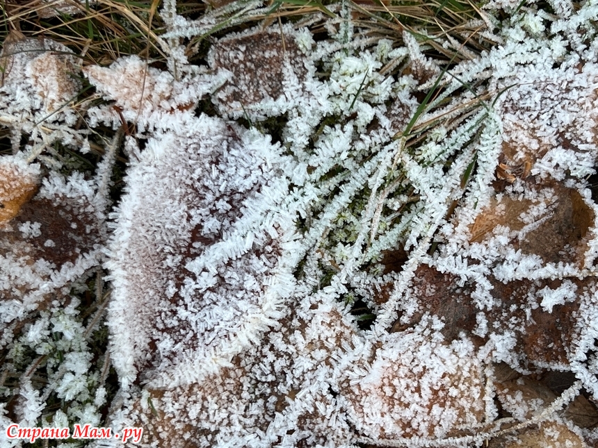 В воскресенье подморозило. Гуляли в заповеднике, любовались на изморзь на траве.