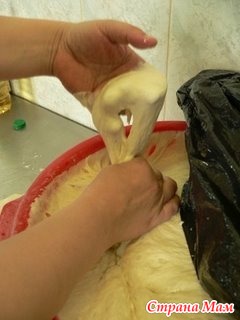 Затем хорошо маслом смазать стол. Можно налить масло в мисочку – удобно будет смазывать руки. А ещё удобнее – сразу поставить рядом миску с холодной водой – мыть руки.