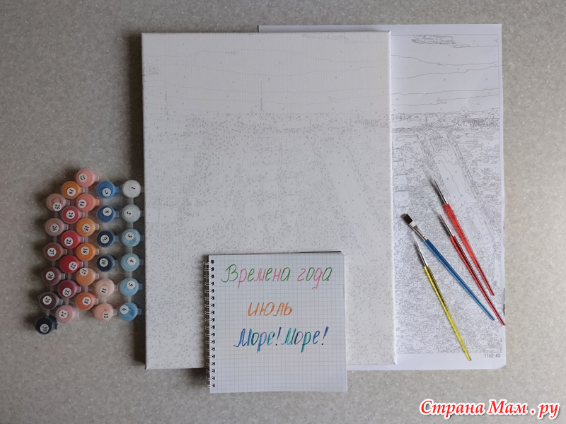 Холст на подрамнике, акриловые краски 30 цветов, кисти.
