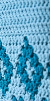 Вяжите крючком ряды 1-28 мозаичным узором, чередуя 1 ряд цветом и 1 ряд цветом B. Наконец, провяжите еще 3 ряда нитью петроза.