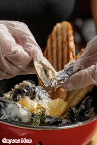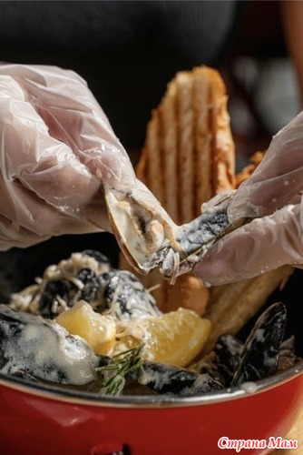 Если честно говорить, там есть то нечего. Хотя бульон с сухариками, вполне насыщает. Но сам факт спонтанных посиделок, ковыряние в створках мидий - как то вдохновляет, расслабляет, объединяет.