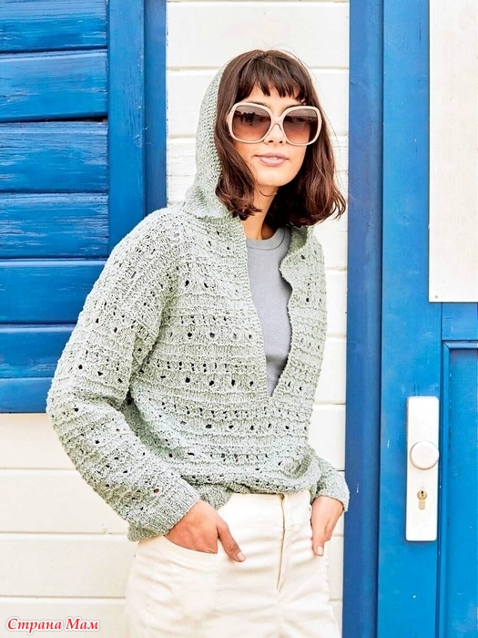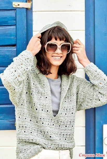 Для капюшона оставленные 22 п. правой половинки переда, 24 п. спинки и 22 п. левой половинки переда надеть на круговые спицы = 88 п.