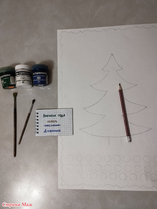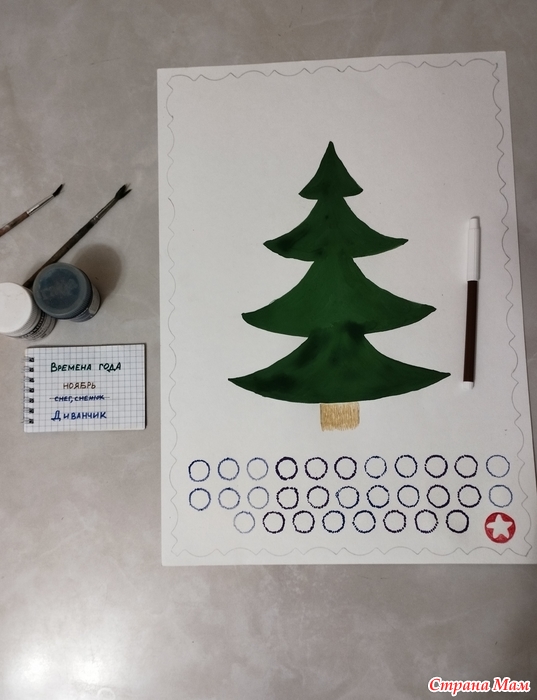 Спешу отчитаться своим проектом за ноябрь. У меня это традиционная для нашей семьи ёлочка- адвент. Специально посчитала - в этом году рисую её уже 8 раз.