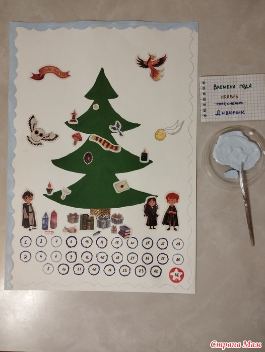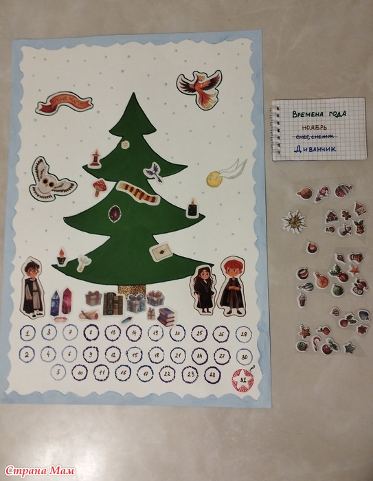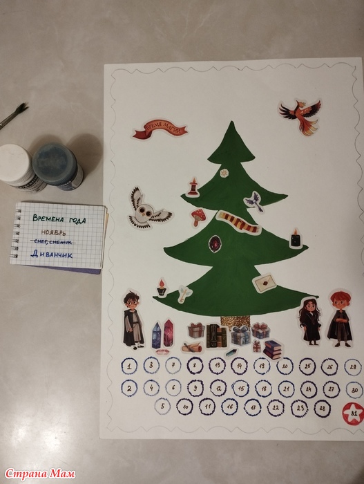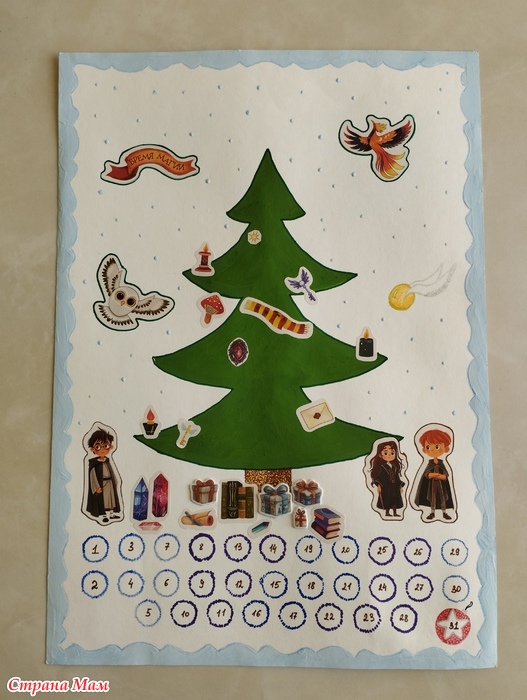 Получилось совместить мир магии, Гарри Поттера и новогодний адвент. Дочки его ещё не видели.