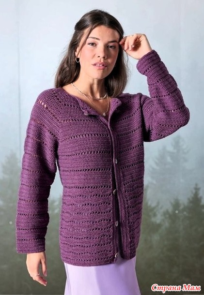 Кардиган с рукавами реглан. Крючок.