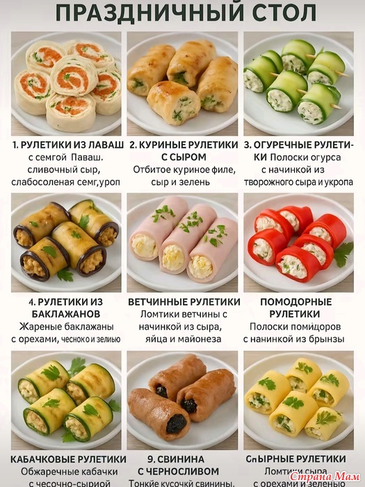 Рулетики из баклажанов и кабачков обычно хорошо идут.
