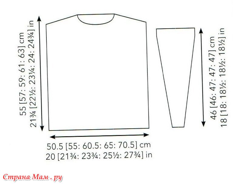 Спицами 5мм и двойной нитью (по одной нити А и В, сложенных вместе), набрать 71 (77, 86, 92, 98)петель