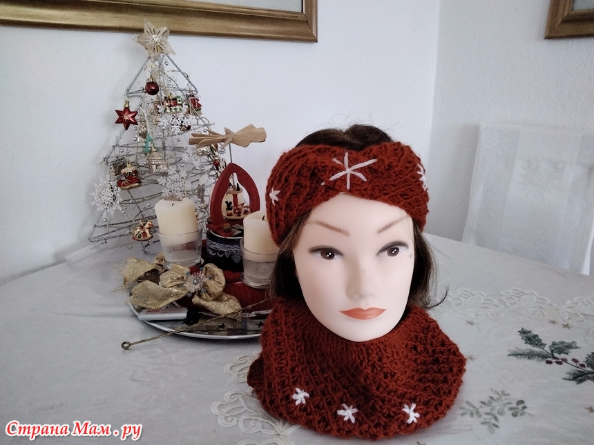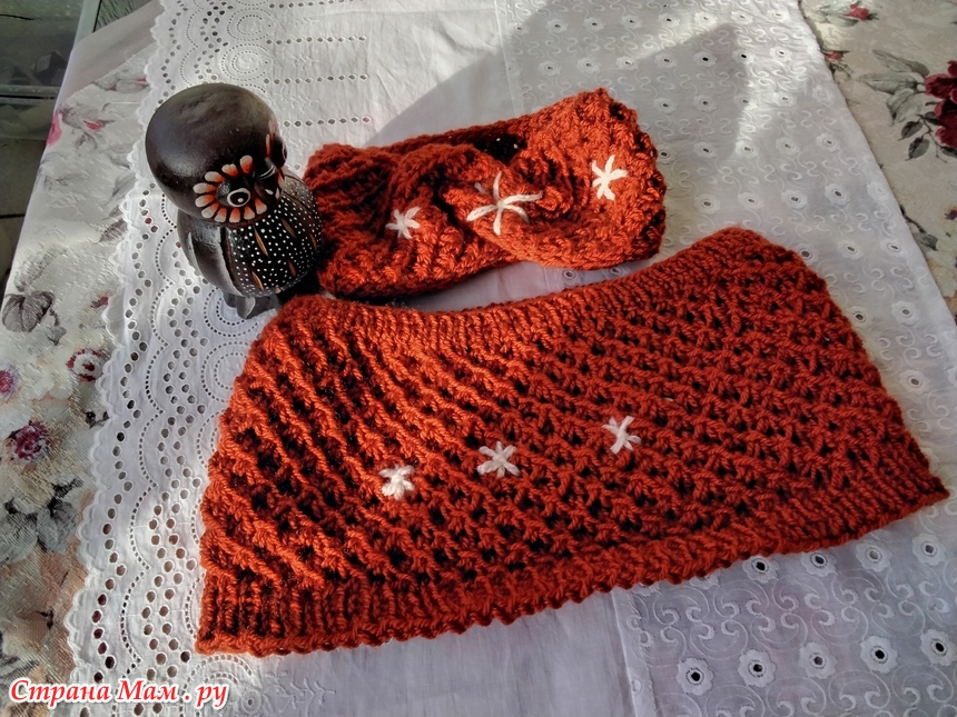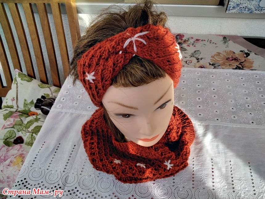 Времена года. Ноябрь. Комплект повязка и снуд.