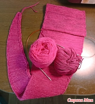А потом мне моча в голову ударила и я решила, что лежат у меня 4 мотка Фиджи, надо их тоже пристроить и... башлык отличная тема. В общем, вяжу второй параллельно. Тут уже спицы 4,00мм, получается повоздушнее. Не знаю кому, может дочери, может мне, может подарю, может в ДПИ отдам (там всегда тёплые головные уборы нужны).