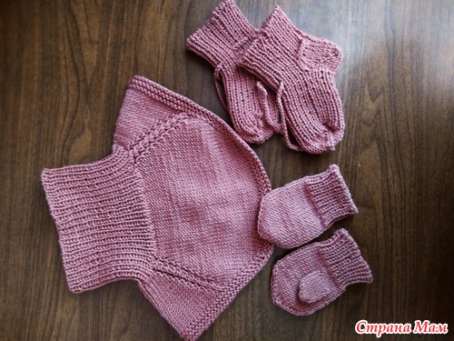 Наборчик для малыша отдала, перевязала рукавички добавив пару рядов.