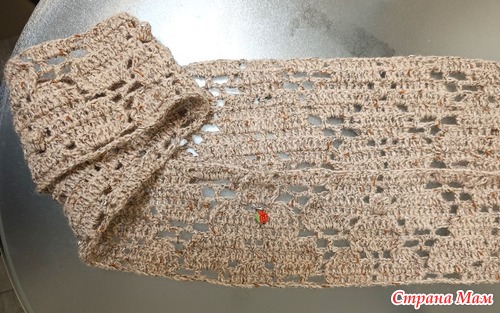 И довязываю рукава у футболки. Почти готова. Обвязывать не буду, будет лёгкий вариант футболочки на лето. Спрячу хвостики и в стирку.