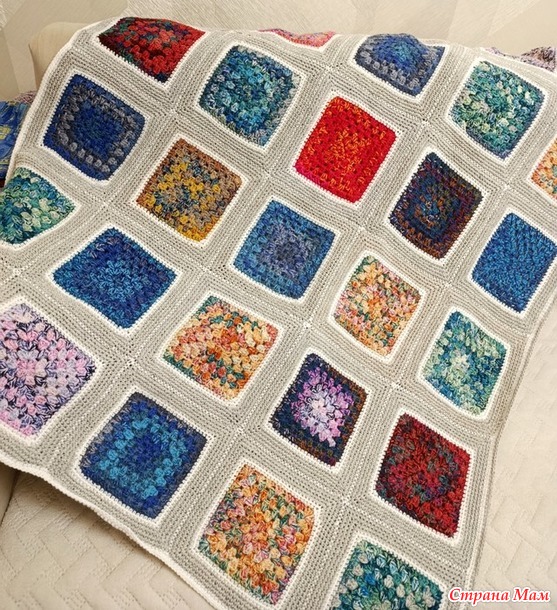 Я на этой неделе практически ничего не вязала. Сын завтра будет дома, попрошу его помочь сфотографировать плед.