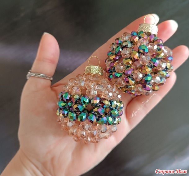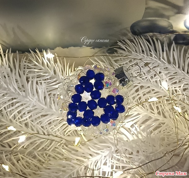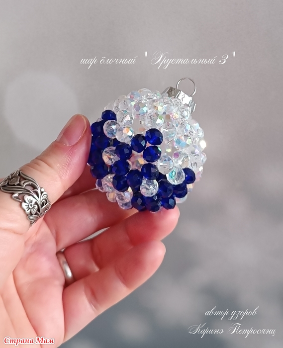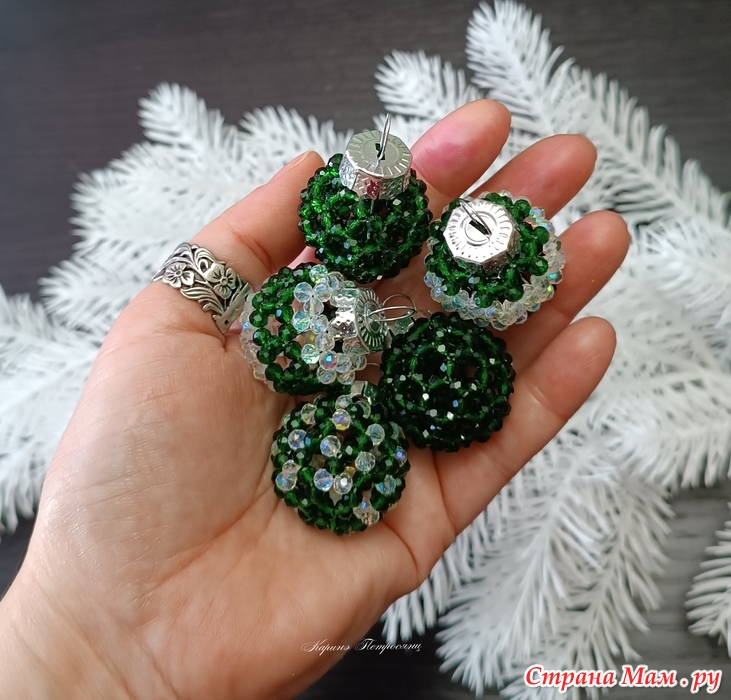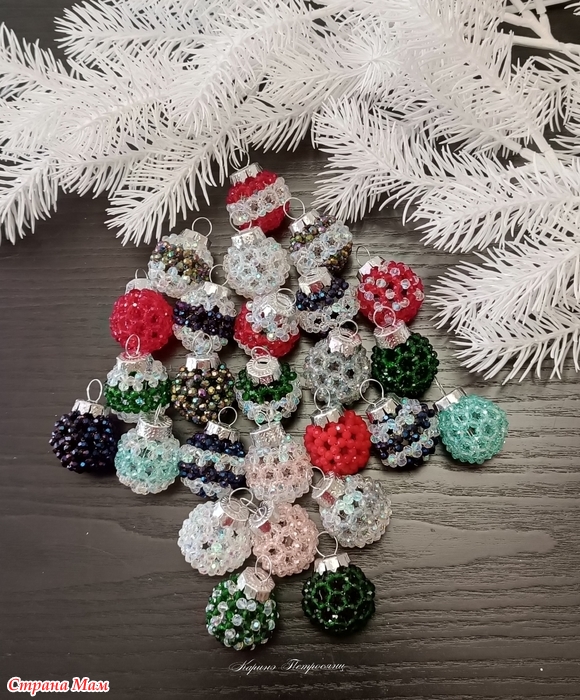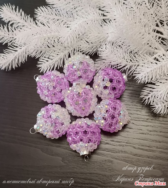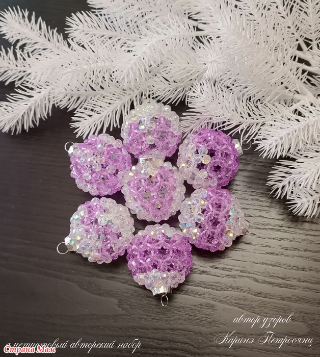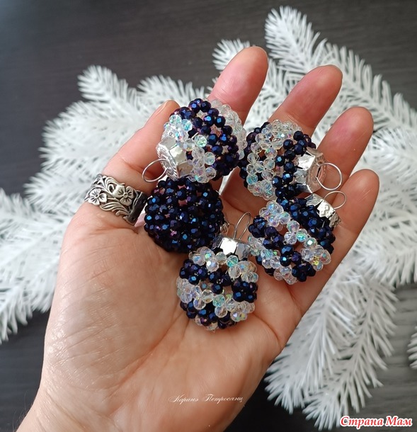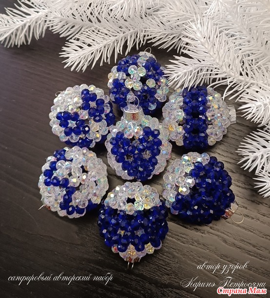 В этом сезоне я почти не вязала)) Только один авторский набор и авторские елочки, наборы снежинок так и лежат не заблокированными и не довязанными)) А все потому, что я два месяца с головой в декоре из хрустальных бусин)) Плела шары, лошадок, сердечки и создала даже свою серию шаров)) Это затянуло меня на столько, что не остановиться))