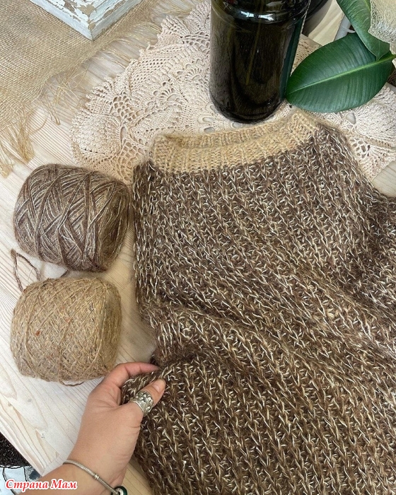Плотность вязания: 14п и 20р.=10х10см (свяжите образец чтоб выявить свою плотность). Вязала на спицах 4мм и 5 мм