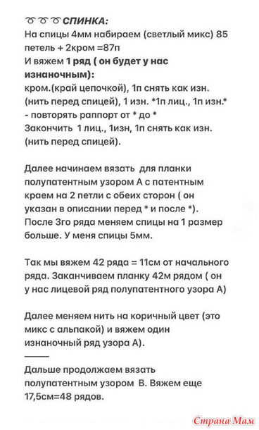 Планка (низ изделия) вяжем полу патентным узором A.