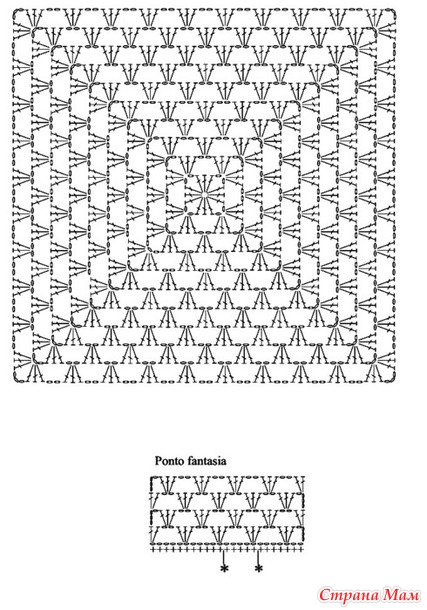 Плотность вязания: квадрат 10 см, связанный СН крючком 3 мм = 28 п. x 12 рядов.