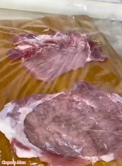 Кстати, подумала, что если взять вырезку, то медальон чики будут маленькие. В любом случае в 2 раза меньше, чем из карбоната то же самое резать