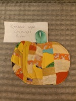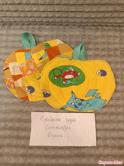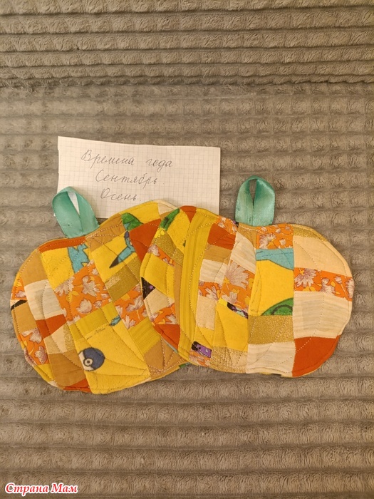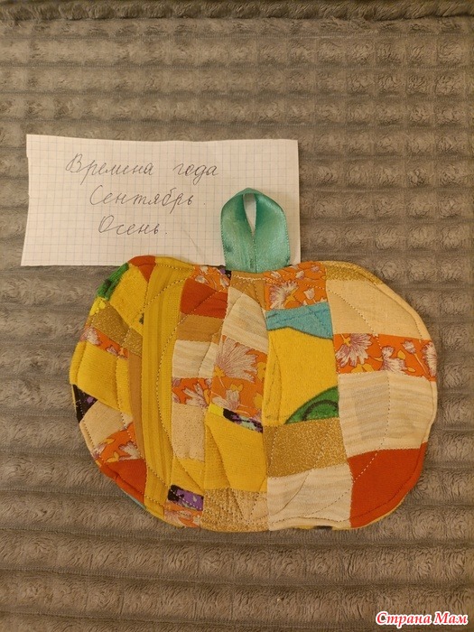 Потом долго не было времени: то на даче дел полно, то не до шитья, то на дачу не ездили. Вот привезла домой всё рукоделие и потихоньку закончила. Правда, не совсем то, что хотелось и корявенько вышло, но тоже неплохо. Дети, правда, сказали, что больше на яблоко похоже, чем на тыкву