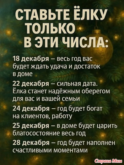 Одни руководствуются личными предпочтениями, другие – древними поверьями. К примеру, по старославянским обычаям, чтобы защитить дом от невзгод, наряжать ель нужно 21 декабря, в день зимнего солнцестояния.Специалисты, опираясь на нумерологию и астрологические прогнозы, выделяют в декабре 2025-го несколько дней, обладающих сильной энергией. Говорят, если ставить елку в определенные даты, можно приманить удачу, успех на работе или личное счастье.