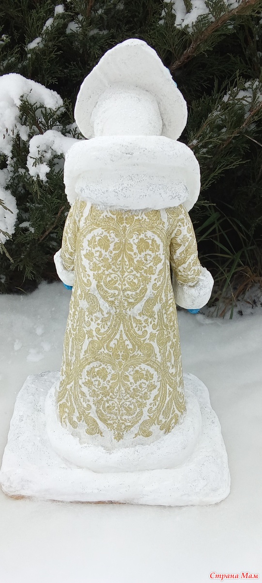 Для имитации парчовой шубы использую специально подобранные бумажные салфетки. Думаю, что если бы такие салфетки существовали в то время, когда игрушки из ваты стали делать впервые, то мастера-мастерицы обязательно их использовали бы, отлично они вписываются в эту технологию.