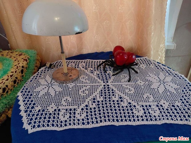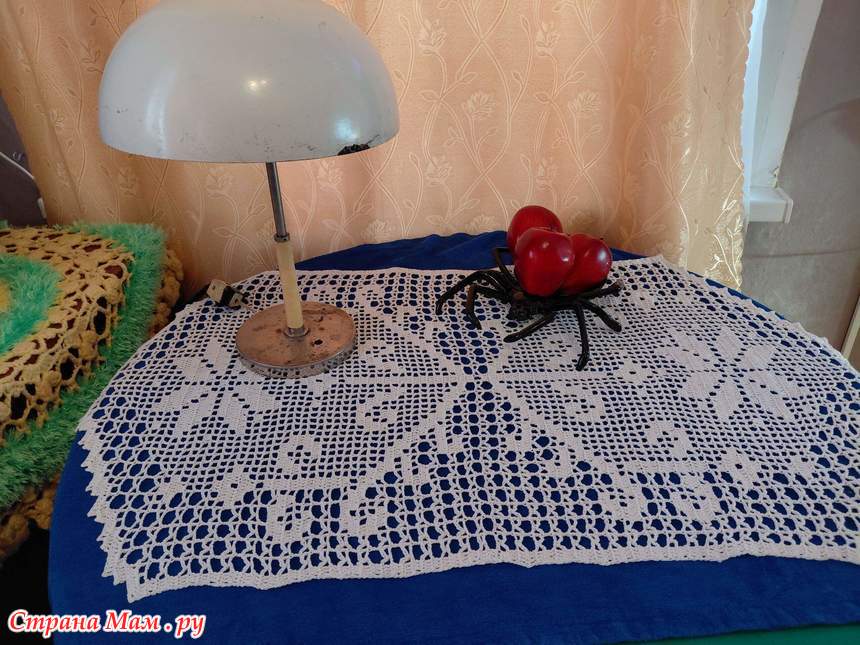 связала филейную салфетку пряжа нарцисс крючок 1.25. вяжется от центра .у меня она получилась чуть больше чем у автора . хотя крючок тоньше . мой размер 97 на 55