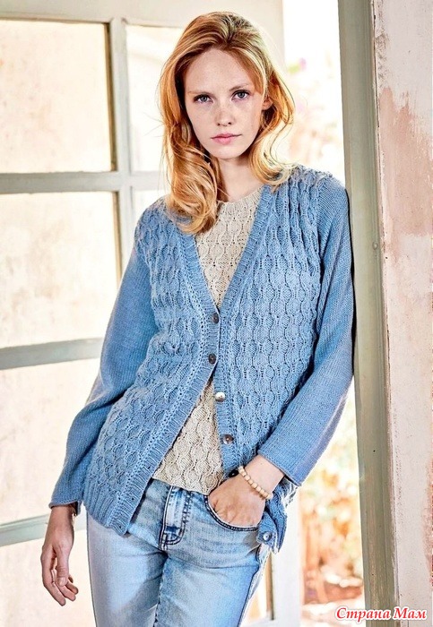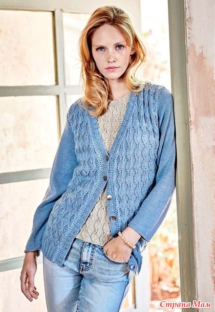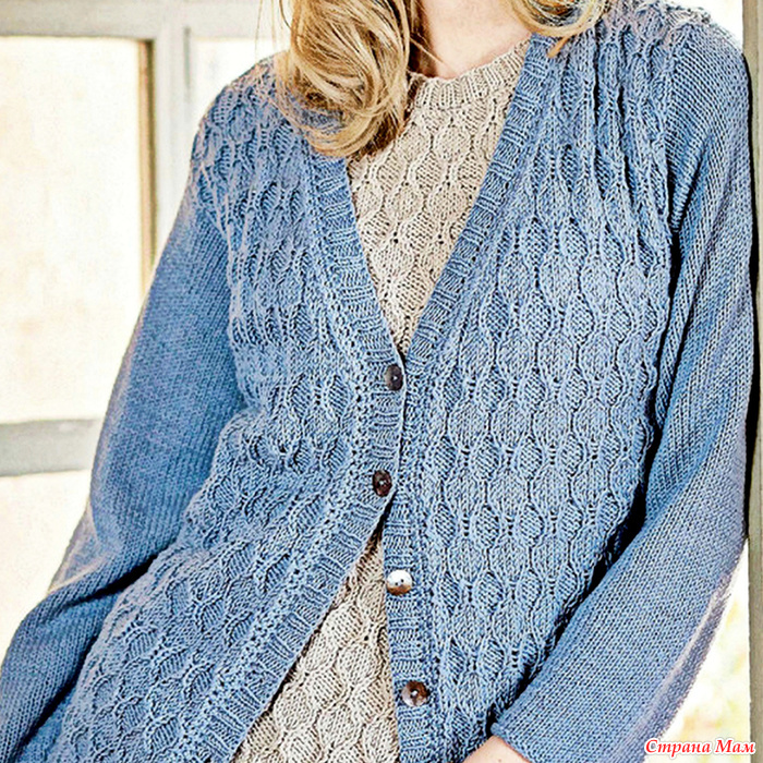 Комплект из кардигана и топа с узором «соты». Спицы.