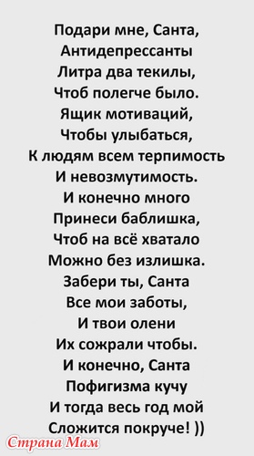 Деду Морозу - чтоб подарков хватило всем и никто на него не обижался!