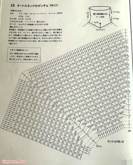 (Плотность вязания) Вяжите узор на квадрате 10 см. 15,5 дней x 9,5 рядов.