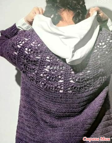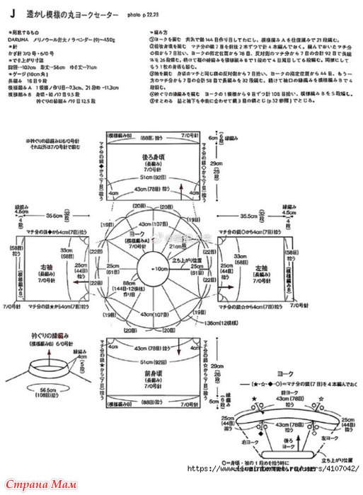 Ажурный джемпер с круглой кокеткой. Крючок.