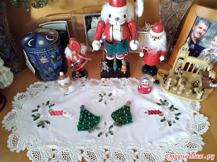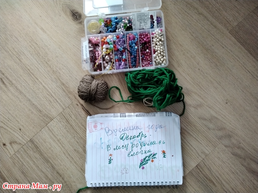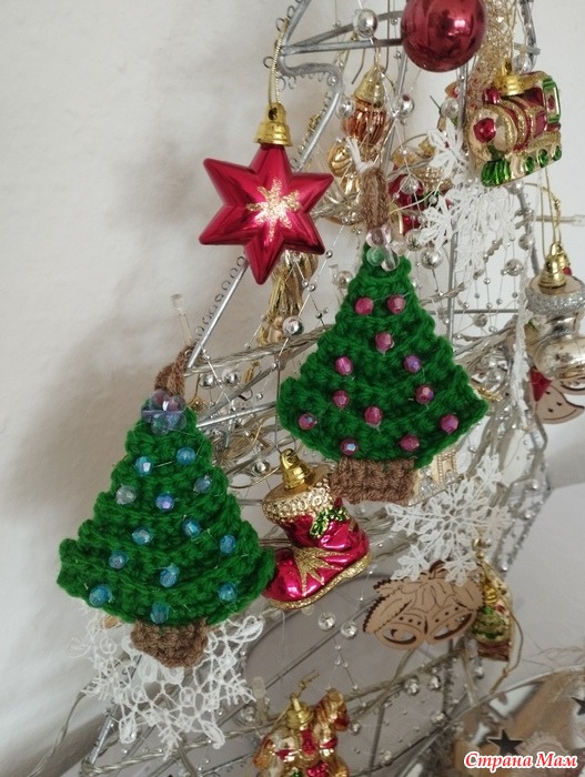 Потом решила что ёлочка получится голой и пошла искать в своих несметных запасах бусин и бисера.