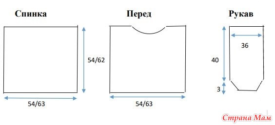 Плотность вязания 16 петель – 9 см, 48 рядов –24 см.