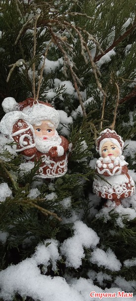 Сегодня наконец-то ещё снежок выпал, и снова я в сад, к можжевельнику на фотосессию. Думаю, что на новогодней ёлке Дед Пряник и Баба Пряниха будут на своём месте, вкусные, аппетитные, сахарные.