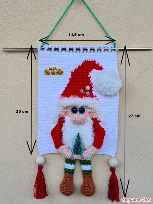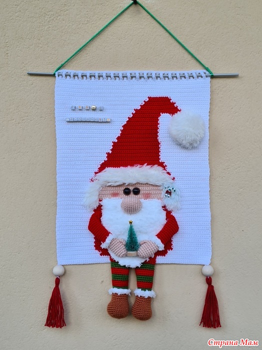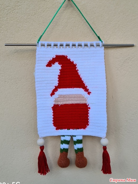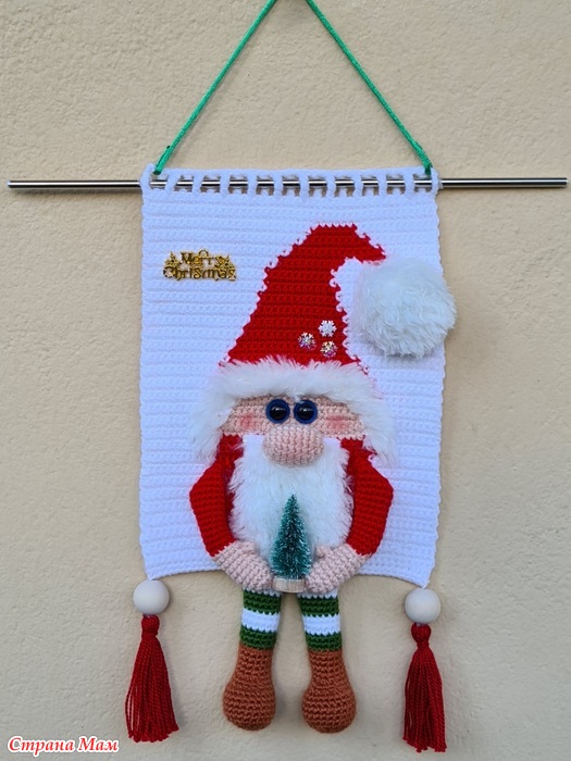 Гномы бывают разные, на этот раз в виде панно. Последние новогодние вязалочки в этом году.